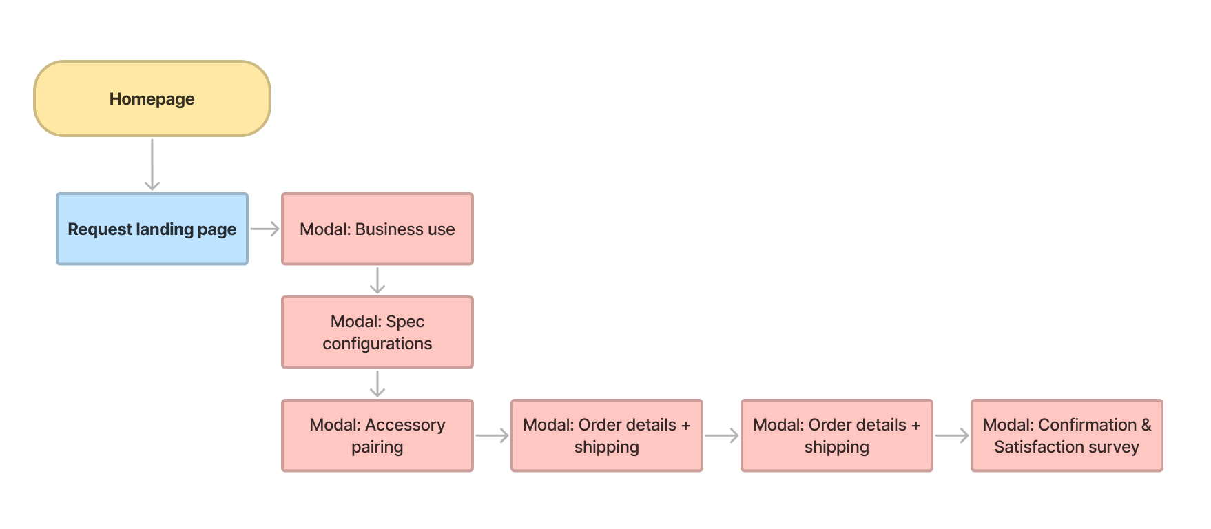 Request flow included unexpected conditional questions throughout 7 steps and caused analysis paralysis